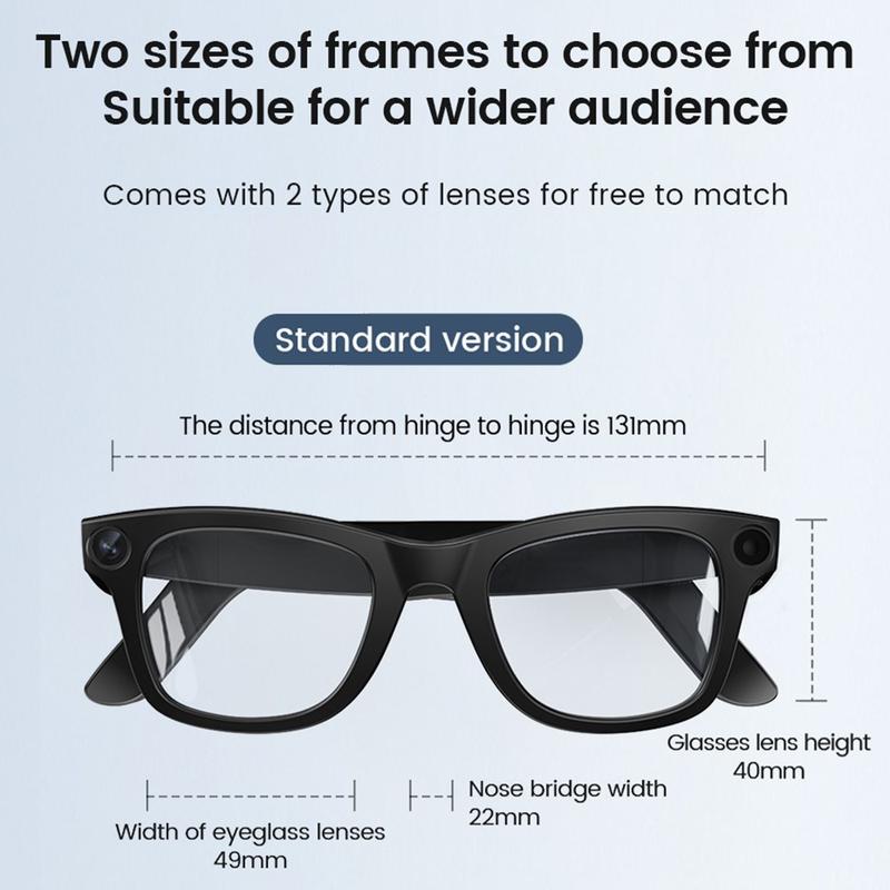 E02 Ochelari inteligenți AI - Ochelari cu cameră cu două lentile cu traducere AI, anti-vibrație și video 1080P