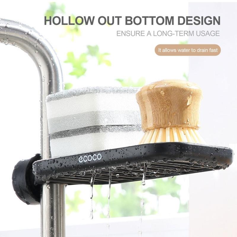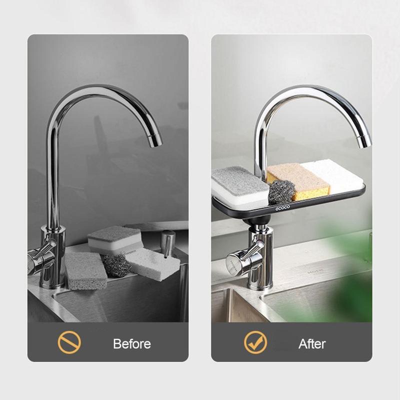 Ecoco Suport pentru burete și perie din oțel inoxidabil - raft de depozitare a săpunului montat la robinet cu tavă de scurgere