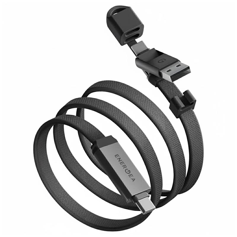 Cablu de încărcare și date 2 în 1 Energea Sheath Travel - încărcare rapidă 60W, conectori interschimbabili USB-C/USB-A, cablu împletit 1.2m