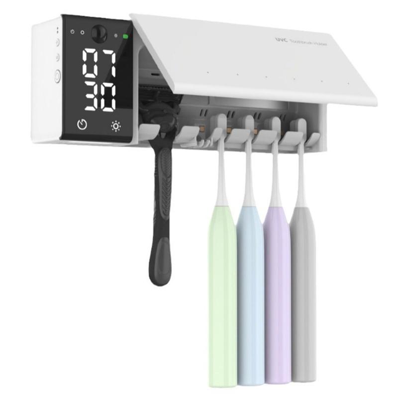 ES909 Dezinfectant inteligent pentru periuțe de dinți UV - Suport de uscare și sterilizare montat pe perete cu ceas LED, cronometru și instalare fără burghiu