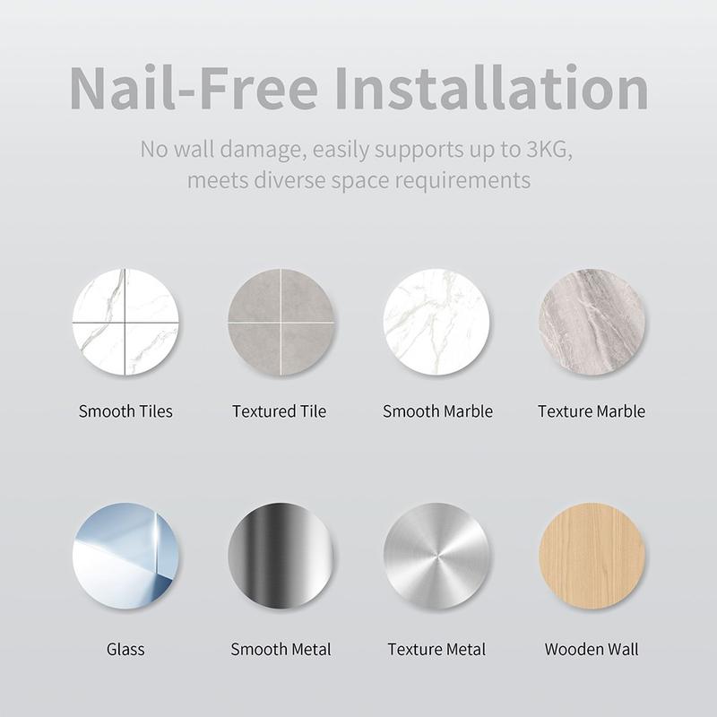 - Instalare ușoară pe perete - Montarea adezivă fără găurire menține pereții intacți și instalarea fără probleme.