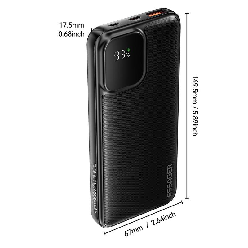 Banca de alimentare digitală ESSAGER combină performanțe puternice de încărcare, cabluri duble încorporate și un afișaj procentual LED clar într-un design compact și fiabil - perfect pentru utilizatorii care doresc o soluție all-in-one, fără a căra extra.