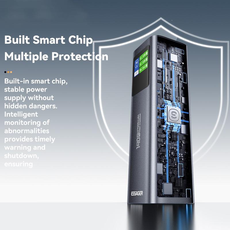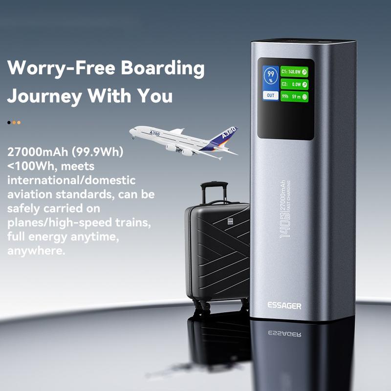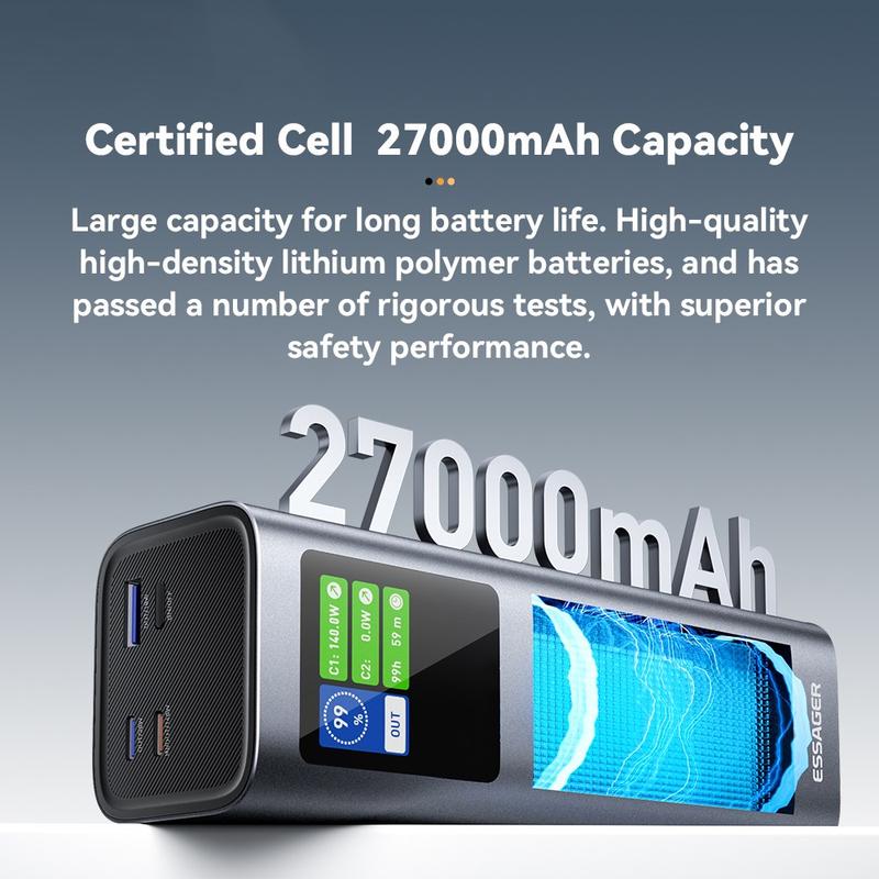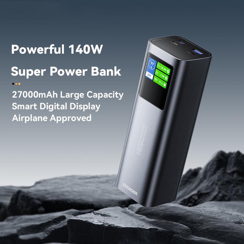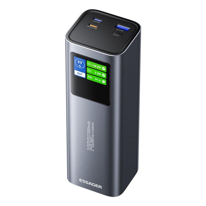 Essager EDY140W-CH0G-Z 27000mAh Power Bank - Încărcare rapidă pe două căi de 140W, ieșire cu trei porturi, cip inteligent cu afișaj color TFT