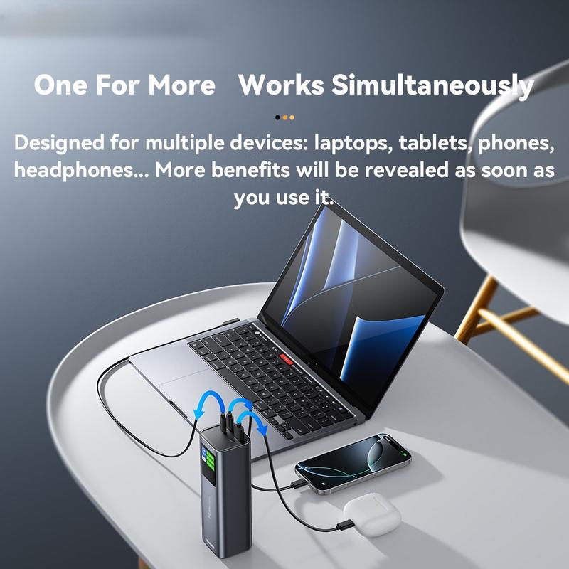 Banca de energie ESSAGER EDY140W oferă încărcare de 140W la nivel de laptop, capacitate uriașă, suport simultan pentru mai multe dispozitive, monitorizare TFT în timp real și o construcție premium durabilă - ideală pentru utilizatorii puternici, călători și profesioniști.