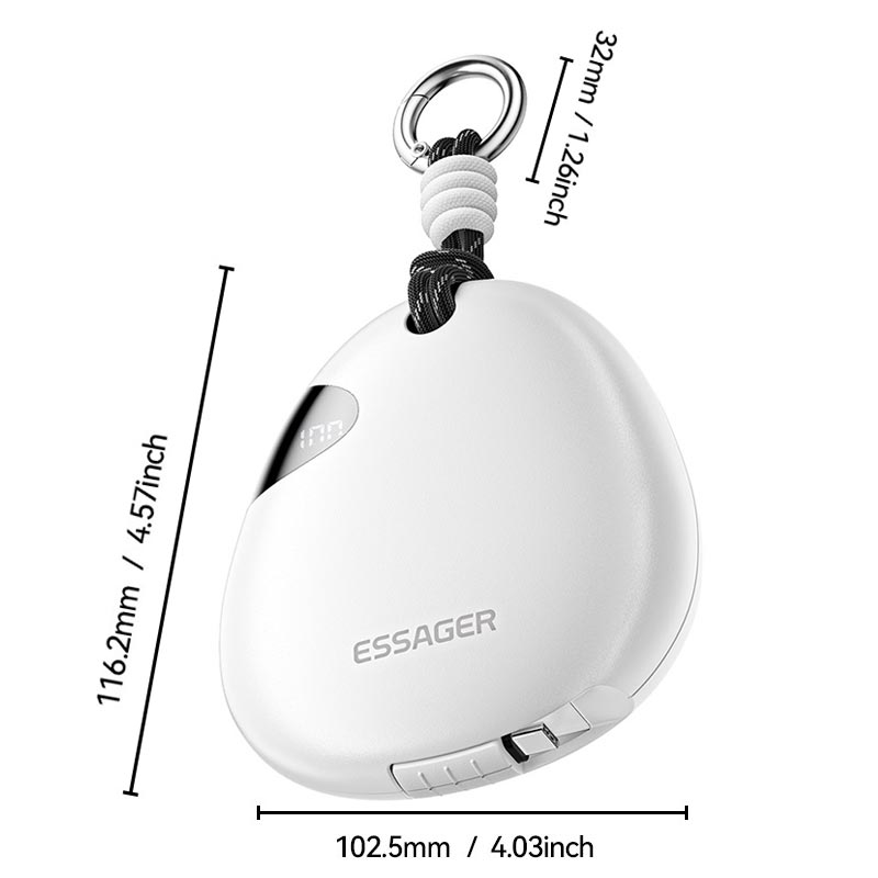 Banca de alimentare cu încărcare rapidă ESSAGER 10000mAh oferă energie fiabilă, în mișcare, cu un cablu tip-C retractabil încorporat de 70 cm. Concepută pentru călătorii, deplasări și utilizare în aer liber, aceasta oferă o încărcare rapidă de până la 22,5 W, rămânând compactă, ușoară și ușor de transportat datorită clemei cu carabină integrate.