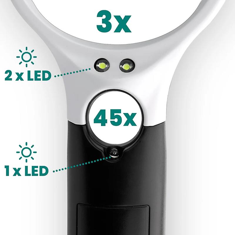 EverActive MG-01 Lupa cu iluminare din spate cu LED - Lentile mari 3x și lentile mini 45x, 3x baterie AAA