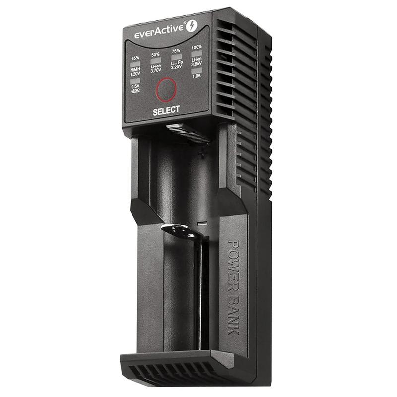 EverActive UC-100C USB-C încărcător universal de baterii cu funcție Power Bank pentru baterii cilindrice Li-ion și Ni-MH