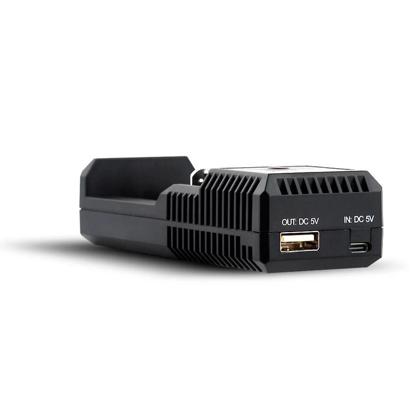 - Funcție Power Bank - cu orice celulă Li-ion (de exemplu, 18650, 20700, 21700) funcționează ca o bancă de alimentare USB portabilă (5V/1A, max 1,5A).