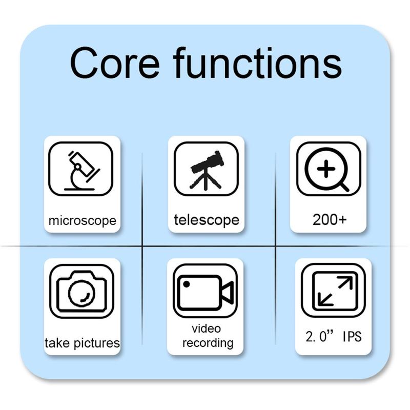 Microscoapele digitale îi ajută pe copii să își dezvolte abilitățile de observare și gândire critică prin încurajarea explorării practice. Ecranele IPS sunt deosebit de potrivite pentru copii deoarece oferă culori stabile și unghiuri largi de vizualizare. Combinarea funcțiilor de microscop și telescop introduce atât perspective micro, cât și macro, ajutându-i pe copii să înțeleagă mai bine lumea din jurul lor.