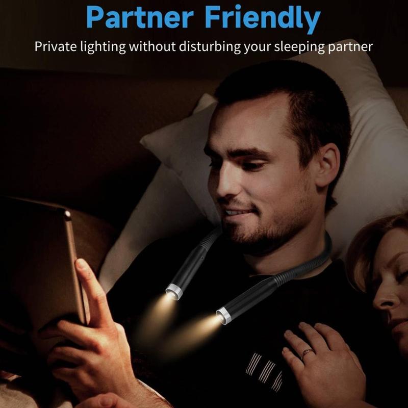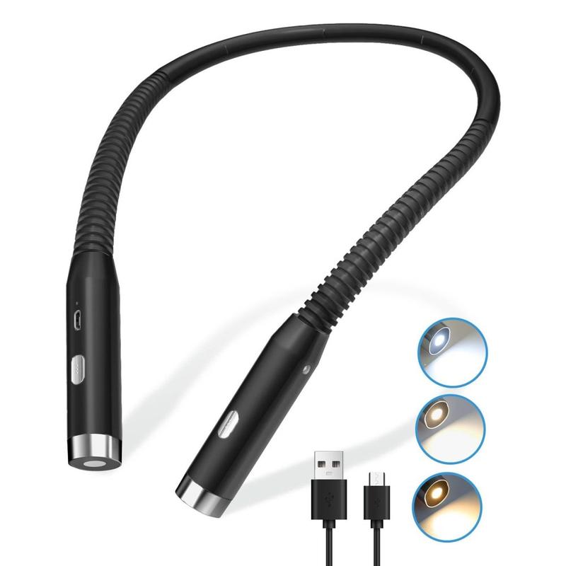 F4 LED lumină de lectură pentru gât - reîncărcabilă, prietenoasă cu ochii, flexibilă la 360 °, fără mâini