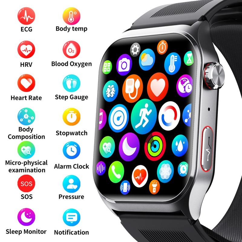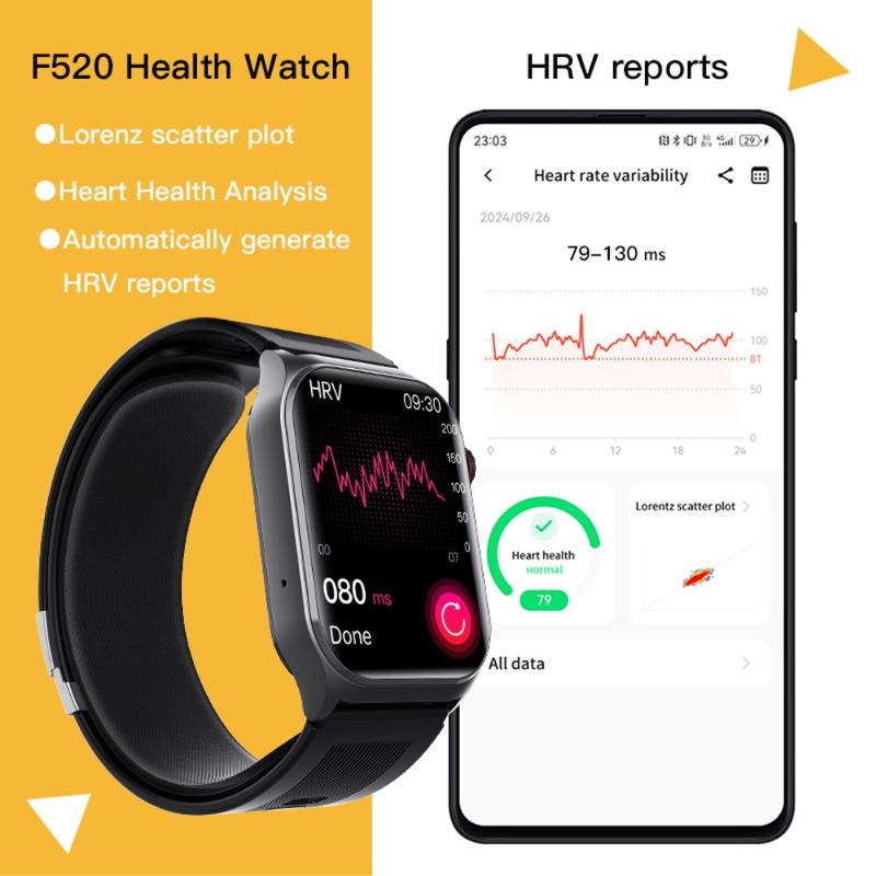 F520 Ceas inteligent avansat cu presiune arterială cu pompă de aer, ECG, ritm cardiac și monitorizare a somnului - afișaj IPS de 2,1", alarmă SOS de cădere