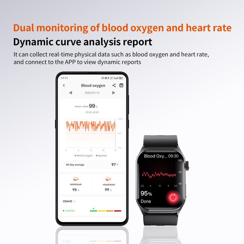 Ceasul inteligent cu pompă de aer F520 este conceput pentru a oferi un ecosistem complet de monitorizare a sănătății în timp real, folosind tehnologie de nivel profesional. Echipat cu un microblower piezoelectric Murata, acesta suportă măsurarea oscilometrică a tensiunii arteriale până la 400 mmHg. Combinat cu un modul ECG de grad medical, evaluarea riscului cardiac, detectarea SpO₂ la lumina roșie, informații despre cortizol și monitorizarea dinamică a ritmului cardiac 24/7, acest smartwatch vă ajută să vă înțelegeți corpul cu o precizie la nivel de laborator.