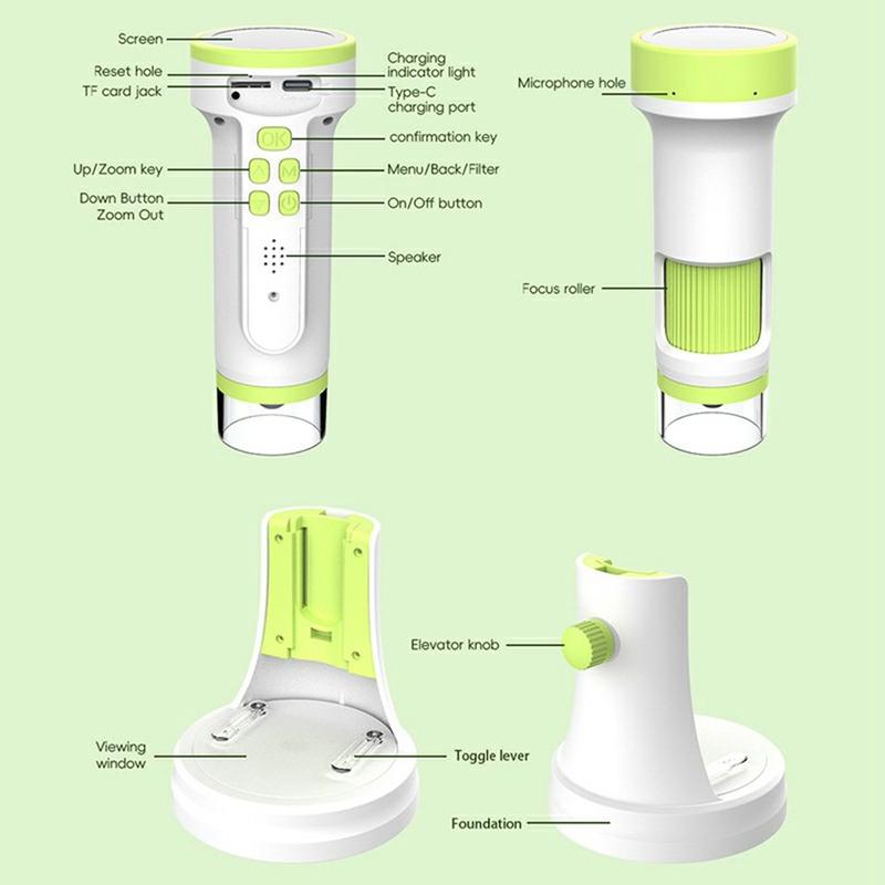 Microscopul digital F9 este un dispozitiv compact și educativ conceput pentru a introduce copiii și începătorii în lumea microscopică într-un mod distractiv și accesibil. Cu dublă utilizare, de mână și de birou, un afișaj IPS rotund clar și înregistrare foto și video de înaltă rezoluție, permite tinerilor exploratori să observe, să capteze și să învețe oriunde îi lovește curiozitatea - acasă, la școală sau în aer liber.