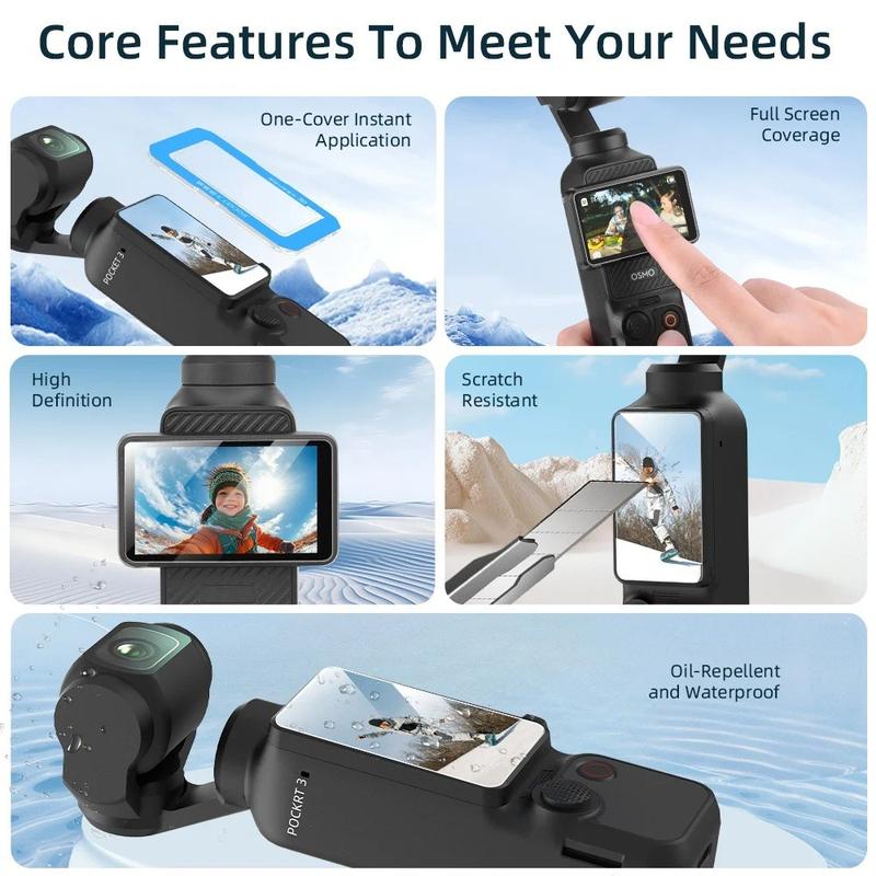Dacă doriți o modalitate simplă și eficientă de a vă proteja ecranul DJI Osmo Pocket 3, acest set de sticlă temperată este o alegere excelentă. Acesta combină claritatea ecranului, răspunsul tactil fluid și rezistența la zgârieturi de zi cu zi într-un kit practic de accesorii conceput pentru utilizarea regulată a camerei.