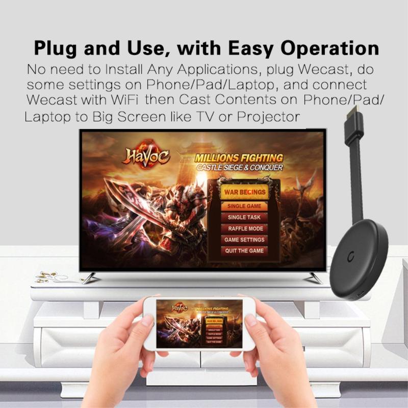 - Funcționare Plug & Play - Simplu de configurat - doar conectați dongle-ul în portul HDMI, alimentați-l prin USB și conectați-l prin WiFi.