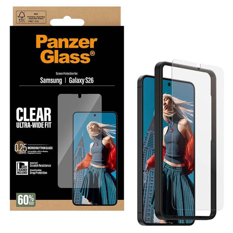 - Protector de ecran din sticlă temperată Ultra-Wide Fit pentru Samsung Galaxy S26 de la PanzerGlass