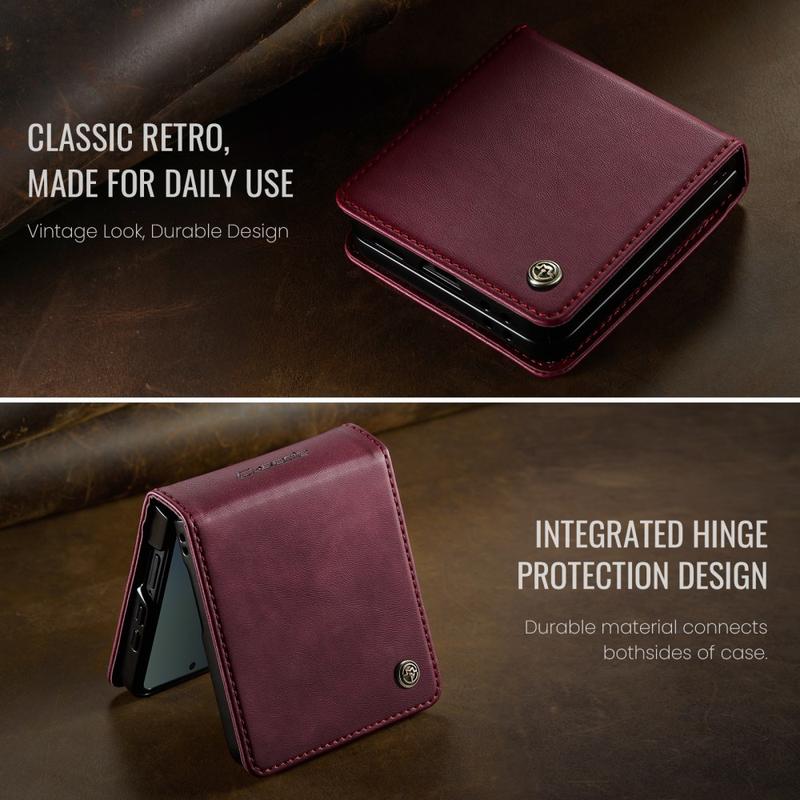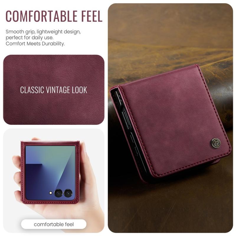 Caseme 033 Geantă de portofel cu textură de vițel și blocare RFID și funcție stand pentru Samsung Galaxy Z Flip7