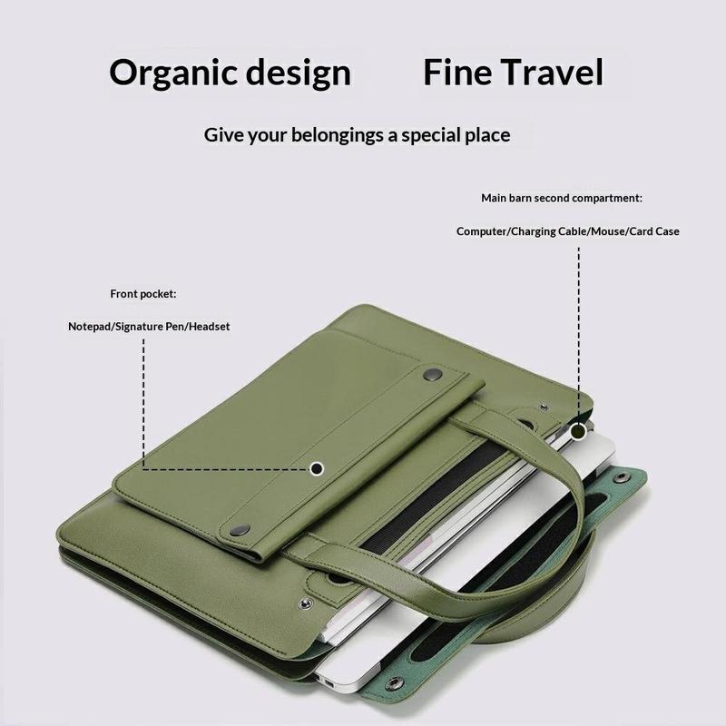 Această geantă tip sac pentru laptopuri de 13,3" și 14" este concepută pentru utilizatorii care doresc o modalitate mai ordonată, mai organizată și mai elegantă de a-și transporta obiectele esențiale de zi cu zi. Datorită structurii sale elegante, inspirate de modelul acordeon, dispunerii practice cu mai multe compartimente și finisajului profesional din poliuretan, este ideală pentru deplasările zilnice, utilizarea la birou, întâlniri, studiu și călătorii.