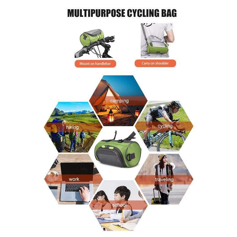 Geanta de depozitare frontală pentru bicicletă poate fi folosită și ca o geantă zilnică casual crossbody cu cureaua de umăr inclusă, versatilă și la modă, perfectă pentru școală, muncă, drumeții, alpinism, ciclism, camping, călătorii etc.