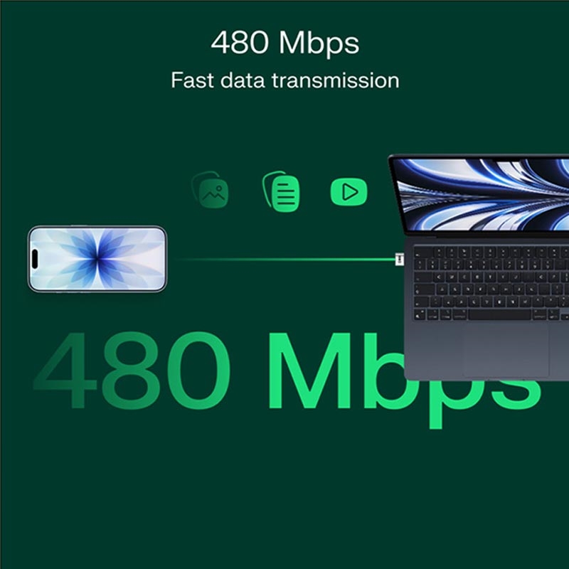 - Transfer rapid de date - Suportă o viteză de transfer de 480Mbps, permițând transferuri rapide și eficiente de fișiere între dispozitive precum smartphone-uri, tablete și laptopuri.