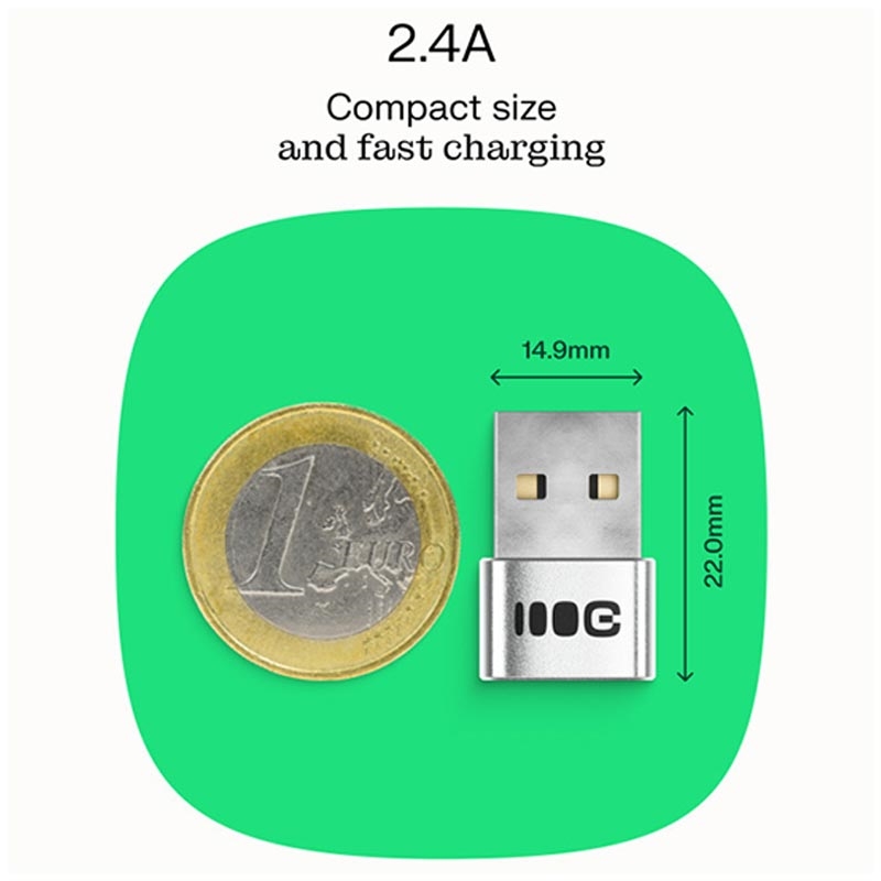 Green Cell Adaptor USB-A la USB-C - Conector de transfer de date Plug & Play din aluminiu, 480Mbps, 2.4A, 12W