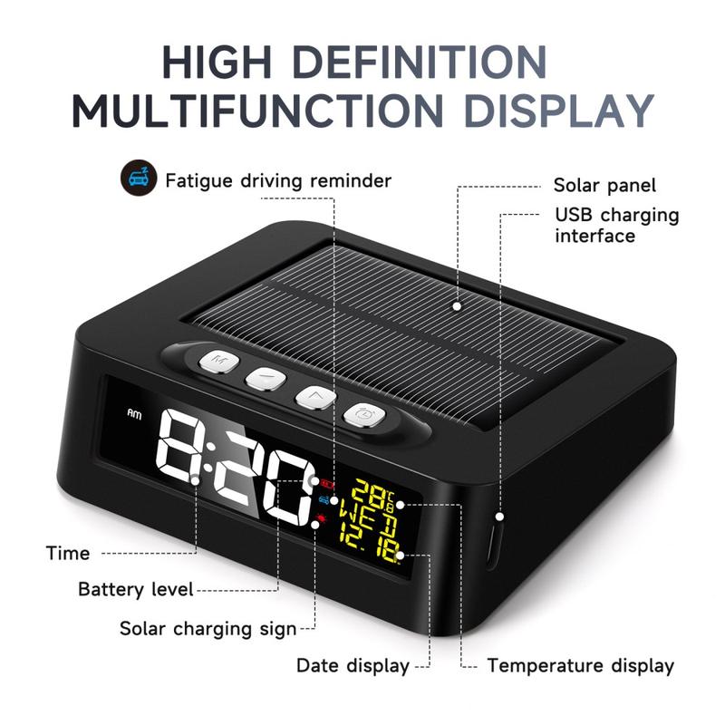Veți obține un ceas portabil care funcționează cu energie solară sau încărcare USB tip C, fiind fiabil atât acasă, cât și în deplasare. Memento-ul de oboseală adaugă un avantaj practic de siguranță pentru șoferi.