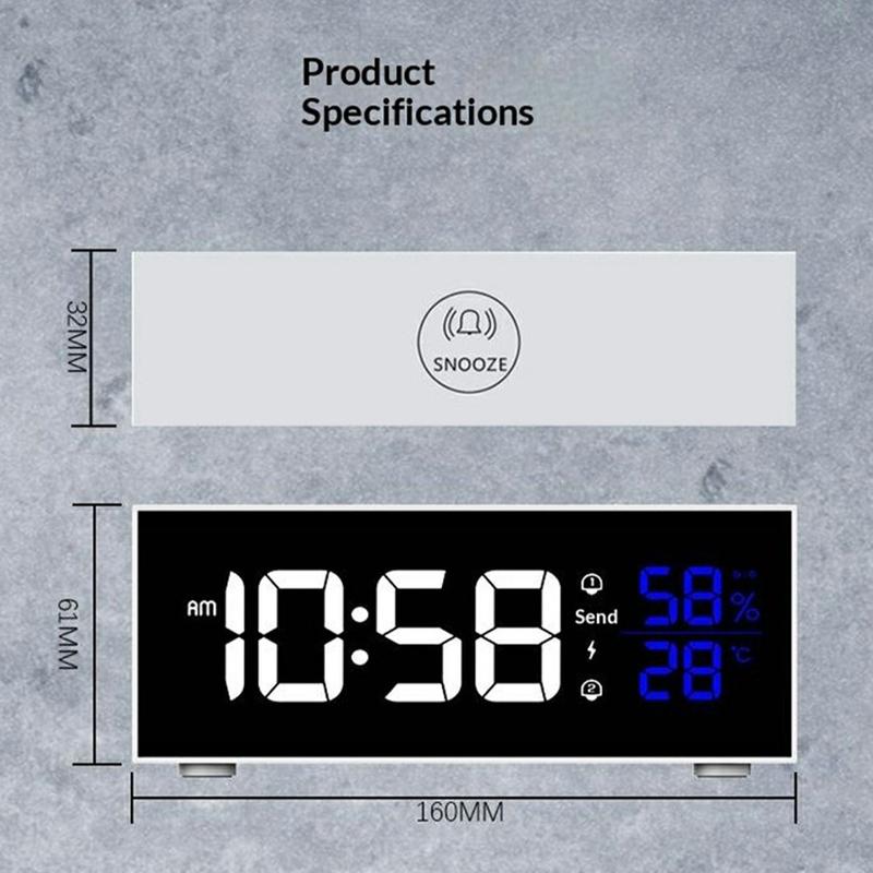 GS-8812 Ceas cu alarmă cu afișaj LED oglindă, alarmă dublă și monitor de temperatură/umiditate