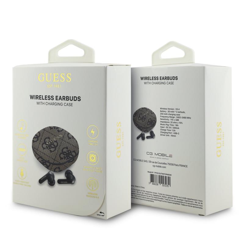 Guess 4G Script Logo ENC Căști True Wireless - Căști Bluetooth 5.4 cu carcasă de încărcare și reducere a zgomotului