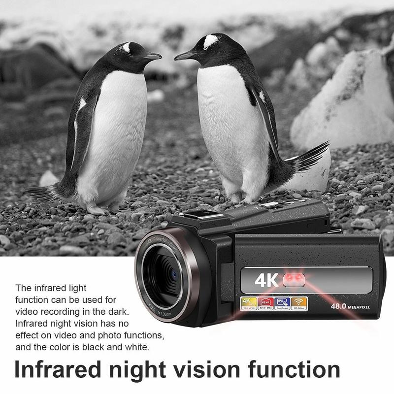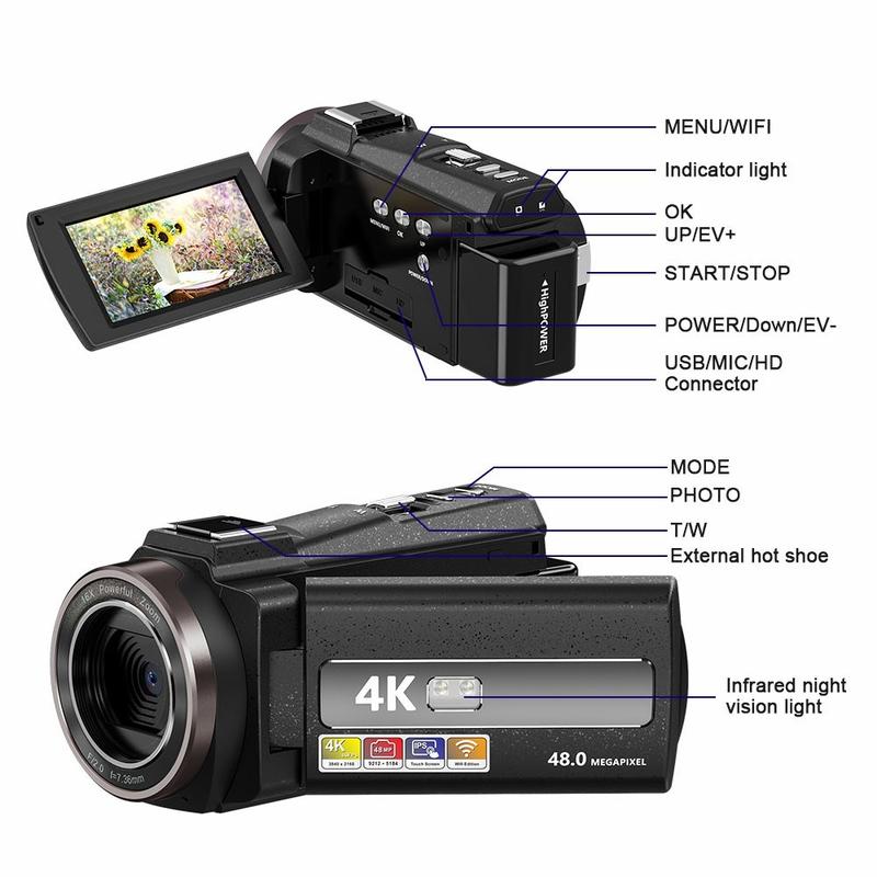 HDV-254KM Cameră video digitală 4K - Camcorder Ultra HD de 48 MP cu ecran tactil de 3,0", zoom 16X, infraroșu cu vedere nocturnă și WiFi