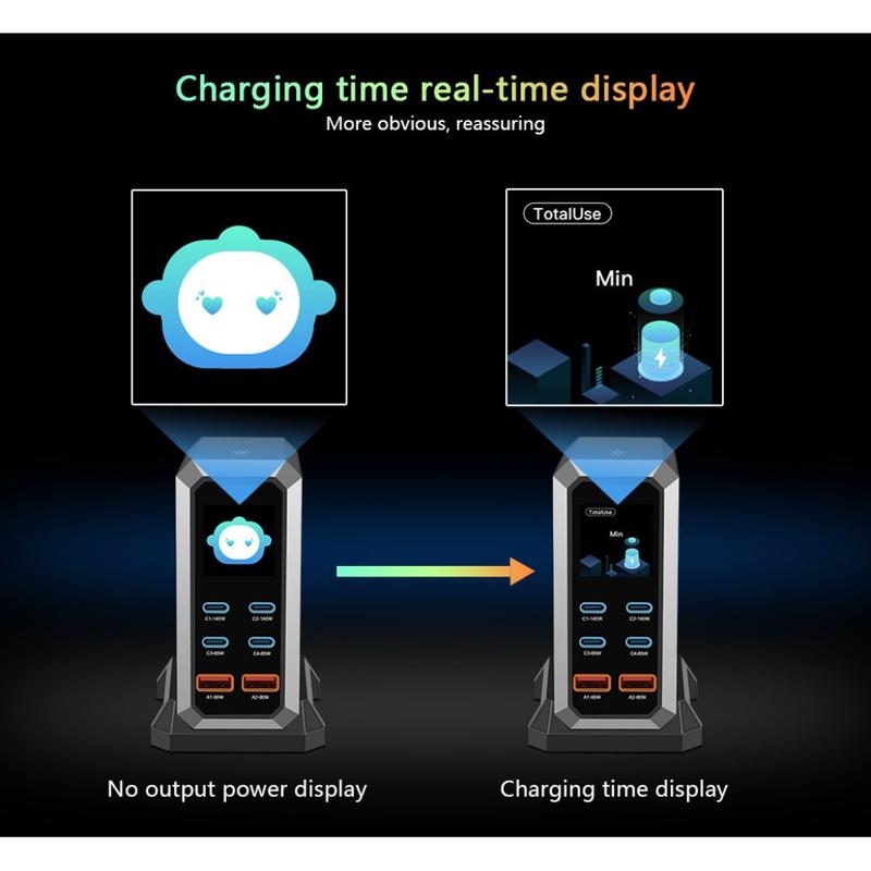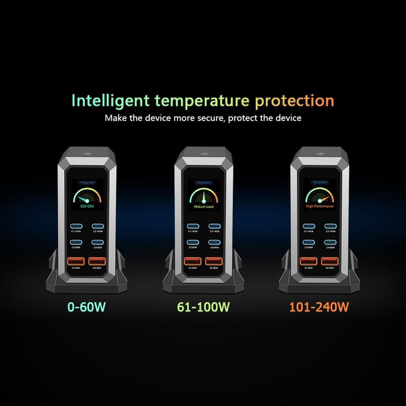 HHW 240W GaN 6-Port USB-C Stație de încărcare - Hub de încărcare rapidă PD3.1 cu afișaj color în timp real