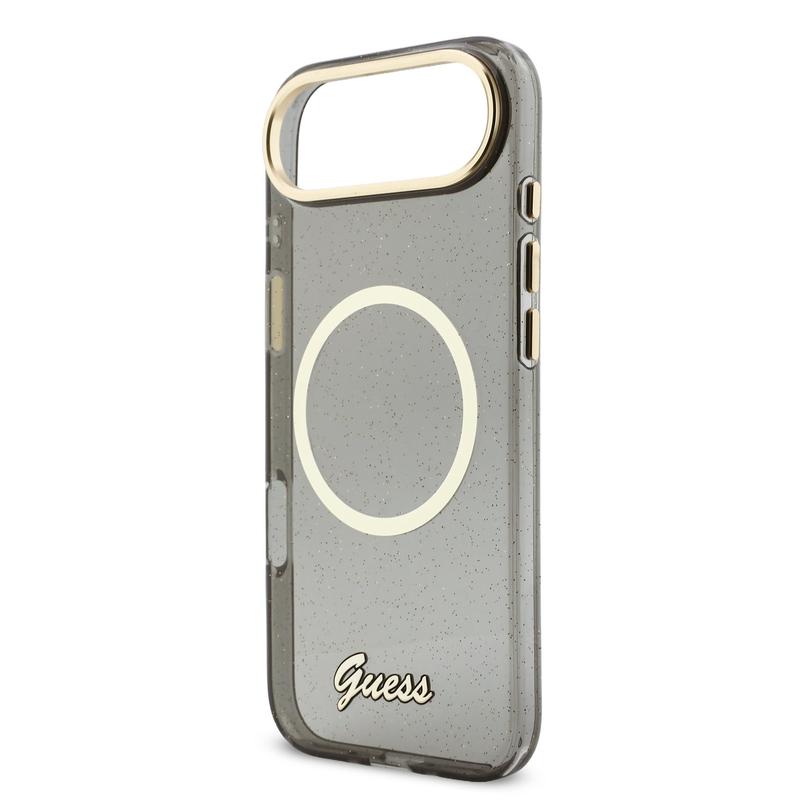 Husă MagSafe cu curea Guess IML Glitter Script pentru iPhone Air - Husă spate cu sclipici și curea pentru încheietura mâinii, protecție PC+TPU, compatibilă cu MagSafe
