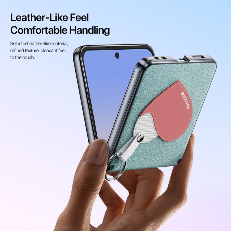 Carcasa Dux Ducis Luvy combină designul elegant cu caracterul practic de zi cu zi, oferind protecție rafinată pentru Samsung Galaxy Z Flip7. Fabricată din poliuretan premium și materiale PC durabile, această carcasă îmbunătățește aspectul telefonului, oferind în același timp confort și fiabilitate pentru utilizarea zilnică.