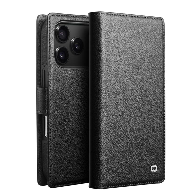 Carcasa de portofel QIALINO pentru iPhone 17 Pro este fabricată din piele naturală de vită premium în primul strat, oferind o senzație moale și elegantă, cu o durabilitate excelentă. Rezistentă la umiditate și uzură, asigură o utilizare de lungă durată, adăugând în același timp o notă de rafinament dispozitivului dvs.