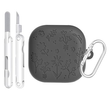 Husă din silicon cu gravură florală, cu creioane de curățare și carabină pentru Samsung Galaxy Buds4, Galaxy Buds4 Pro
