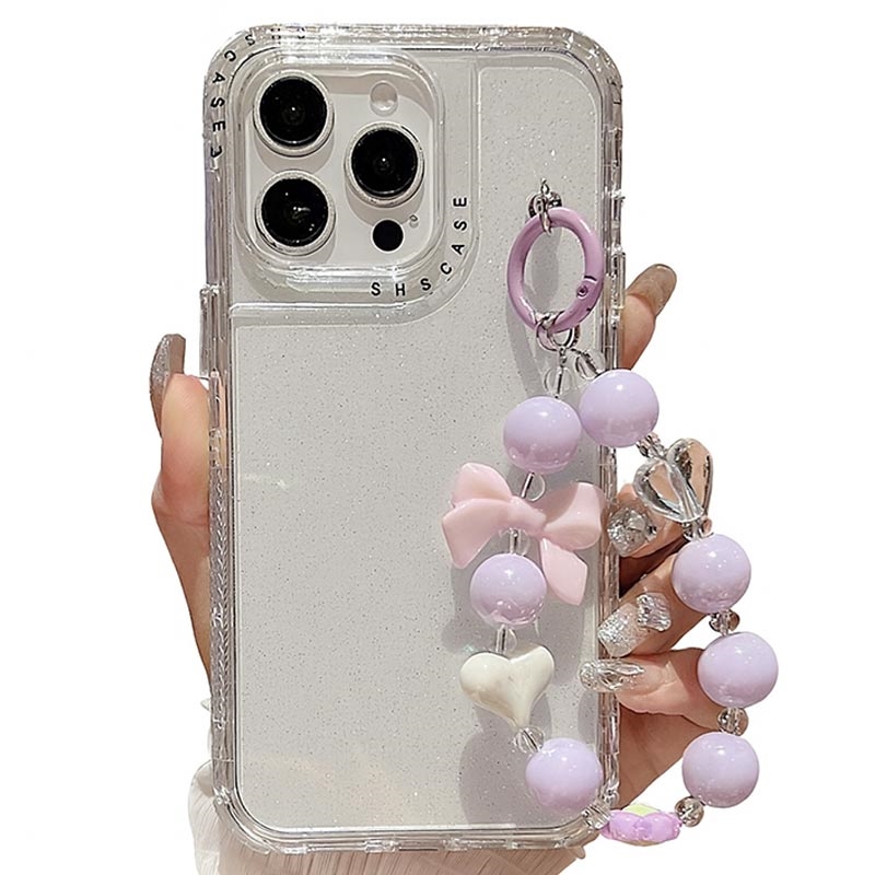 Husă hibridă antișoc Glitter cu curea de încheietura mâinii pentru iPhone 16 Pro Max - PC + TPU capac de protecție