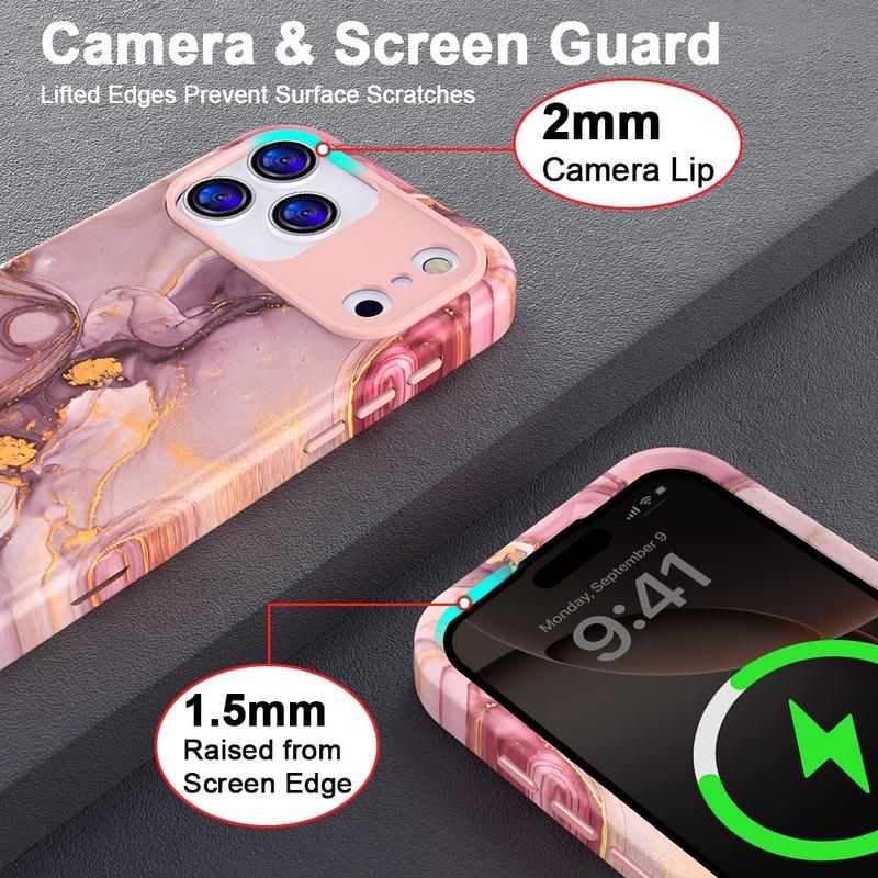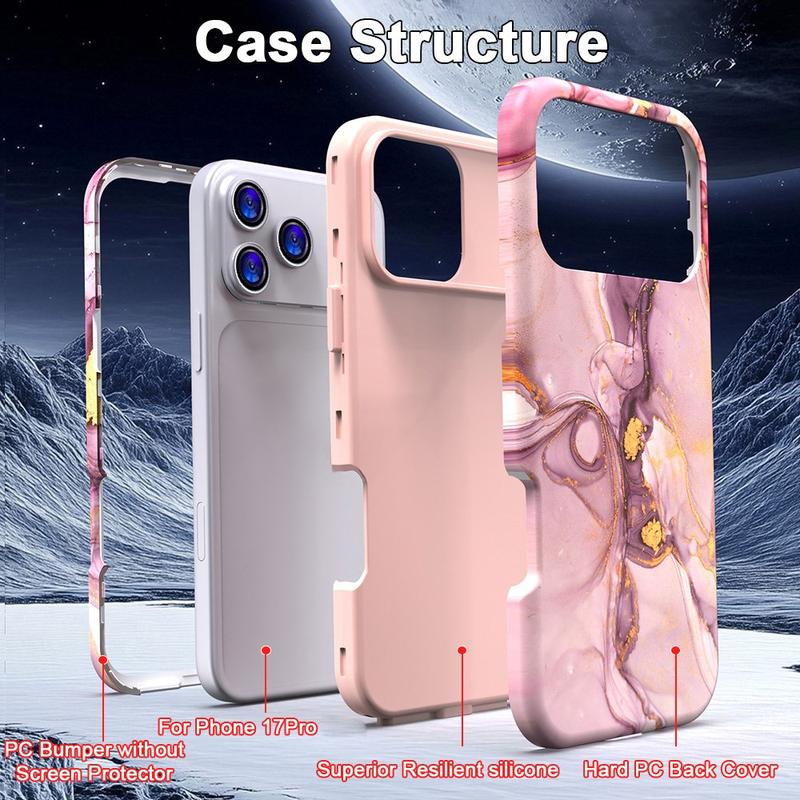 Husă hibridă din marmură de lux pentru iPhone 17 Pro - PC elegant și TPU Shockproof Phone Cover cu protecție pentru cameră