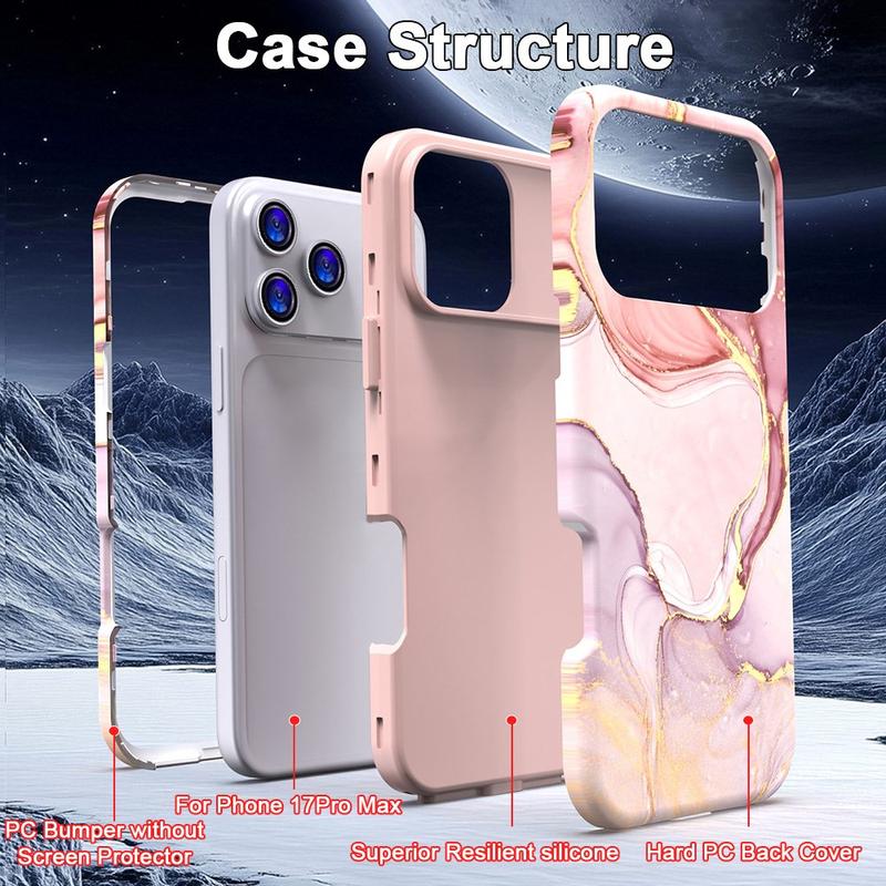 Husă hibridă din marmură de lux pentru iPhone 17 Pro Max - PC elegant și TPU Shockproof Phone Cover cu protecție pentru cameră