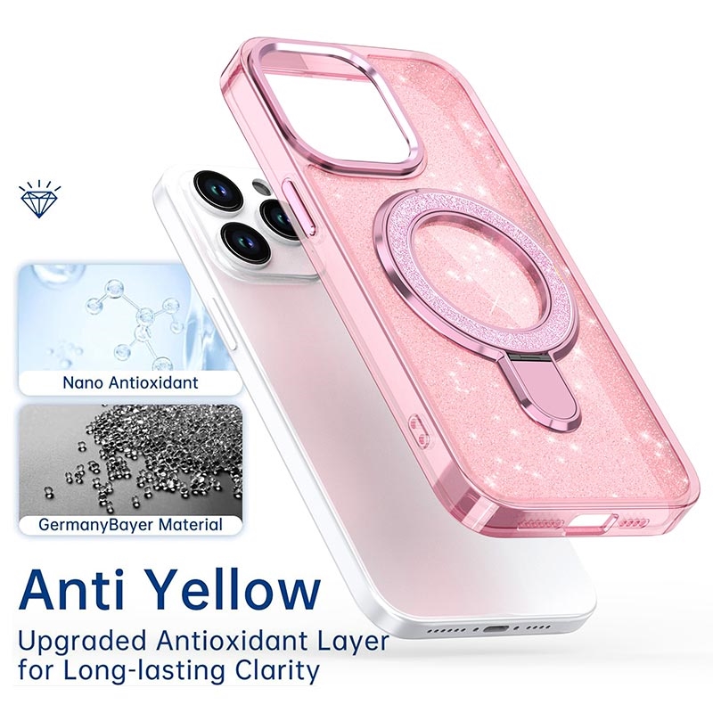 - Design cu sclipici - Dispune de un finisaj cu sclipici strălucitor atât pe carcasă, cât și pe suportul inelar, oferind telefonului dvs. un aspect unic, atrăgător.
