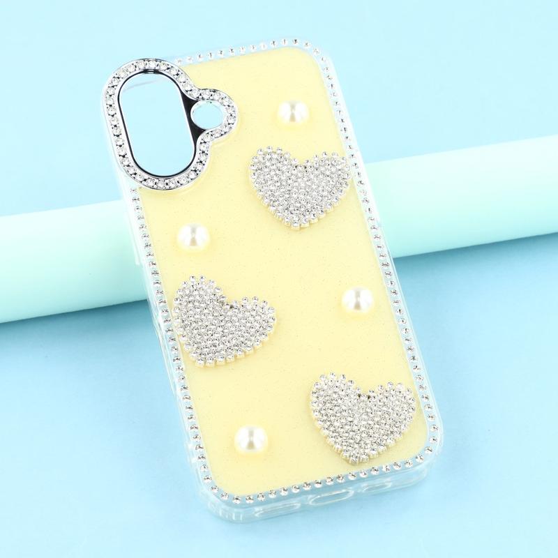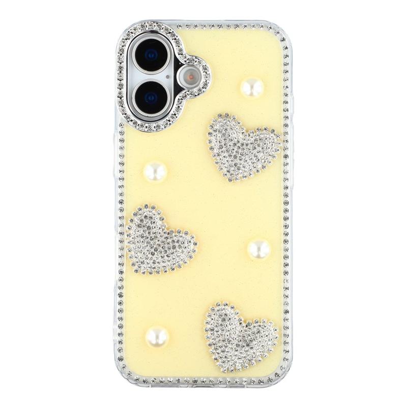 Această husă pentru iPhone 16 combină protecția fiabilă de zi cu zi cu stilul plin de farmec. Dispunând de pietre strălucitoare pe margini și de decorațiuni strălucitoare în formă de inimă de perle pe spate, aceasta transformă iPhone 16 într-un accesoriu la modă, în timp ce îl protejează de zgârieturi și lovituri.