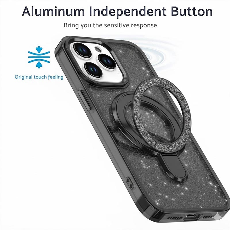 - Design cu sclipici - Dispune de un finisaj cu sclipici strălucitor atât pe carcasă, cât și pe suportul inelar, oferind telefonului dvs. un aspect unic, atrăgător.