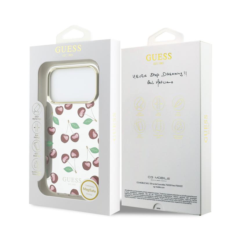Îmbunătățiți-vă aspectul de zi cu zi cu husa Guess PC și TPU Mirror Glitter Cherry MagSafe pentru iPhone 17 Pro. Această husă hibridă elegantă combină moda și protecția, având o suprafață reflectorizantă cu finisaj oglindă combinată cu un design strălucitor Cherry. Fabricată din PC durabil și TPU flexibil, oferă protecție fiabilă în fiecare zi, păstrând în același timp un profil subțire și elegant.