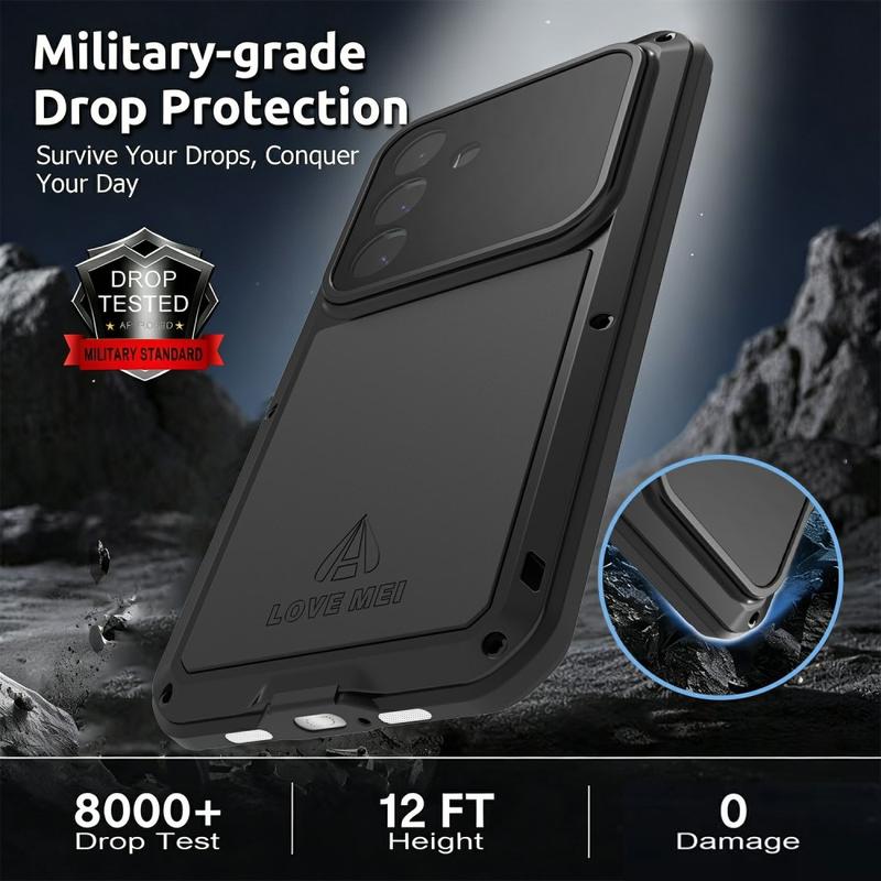 Seria Love Mei este inspirată de ingineria militară și industrială, folosind protecție multistrat cu rame metalice și amortizare din silicon - o structură care poate rezista la căderi de peste 2 metri, menținând în același timp sensibilitatea ecranului tactil.