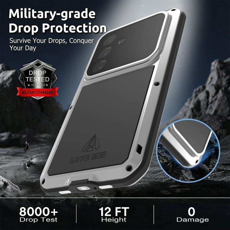 Seria Love Mei este inspirată de ingineria militară și industrială, folosind protecție multistrat cu rame metalice și amortizare din silicon - o structură care poate rezista la căderi de peste 2 metri, menținând în același timp sensibilitatea ecranului tactil.