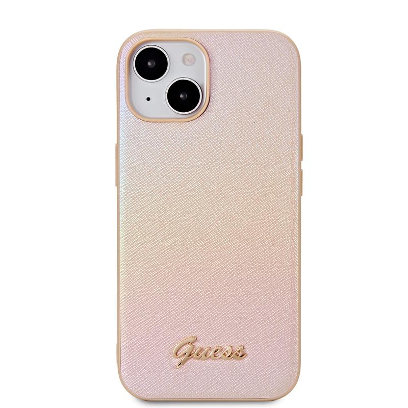 Husă Hybrid Guess Iridescent Metal Script pentru iPhone 15