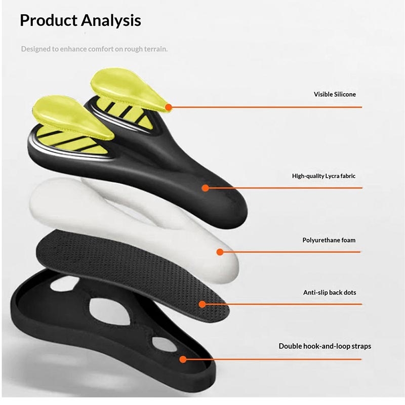Dacă pedalați în condiții meteorologice variate sau doriți un plus de confort fără a schimba șaua, ENLEE EN-330 este o alegere inteligentă. Straturile exterioare rezistente la apă ajută la menținerea umidității la distanță, în timp ce căptușeala din silicon și spumă îmbunătățește confortul în timpul călătoriilor lungi. Cu o bază antiderapantă și curele sigure, rămâne fixat și oferă o senzație consistentă de la primul kilometru până la ultimul.