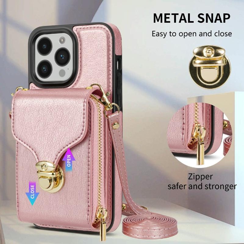 Transportați telefonul, cardurile și banii într-un singur accesoriu elegant cu această husă cu fermoar pentru portofel pentru iPhone 15 Pro. Fabricată din TPU durabil acoperit cu piele poliuretanică premium, aceasta oferă protecție de zi cu zi, înlocuind în același timp nevoia unui portofel separat. Perfectă pentru cei care doresc stil, confort și securitate într-unul singur.