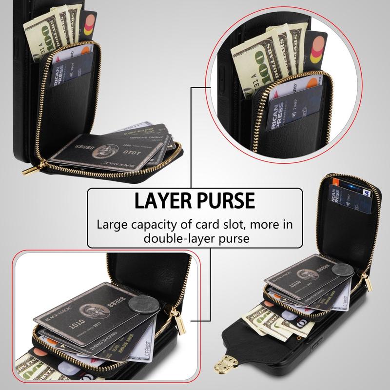 Transportați telefonul, cardurile și banii într-un singur accesoriu elegant cu această husă cu fermoar pentru portofel pentru iPhone 15 Plus. Fabricată din TPU durabil acoperit cu piele poliuretanică premium, aceasta oferă protecție de zi cu zi, înlocuind în același timp nevoia unui portofel separat. Perfectă pentru cei care doresc stil, confort și securitate într-unul singur.
