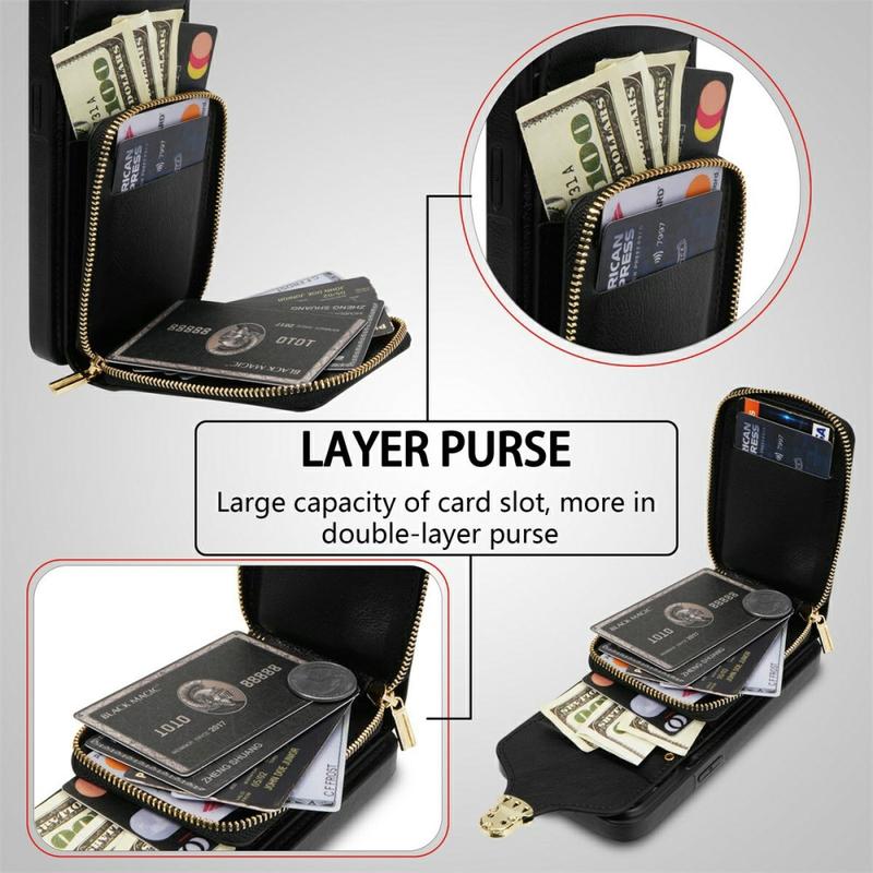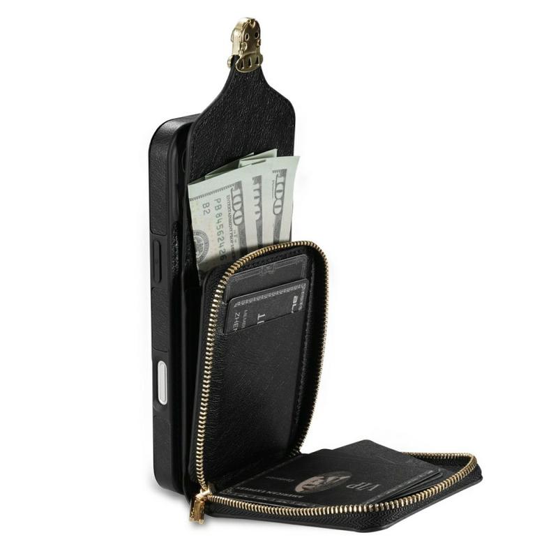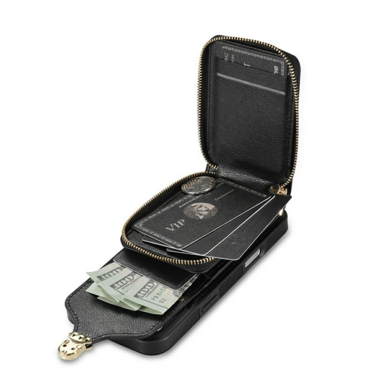 Transportați telefonul, cardurile și banii într-un singur accesoriu elegant cu această husă cu fermoar pentru portofel pentru iPhone 17. Fabricată din TPU durabil acoperit cu piele poliuretanică premium, aceasta oferă protecție de zi cu zi, înlocuind în același timp nevoia unui portofel separat. Perfectă pentru cei care doresc stil, confort și securitate într-unul singur.