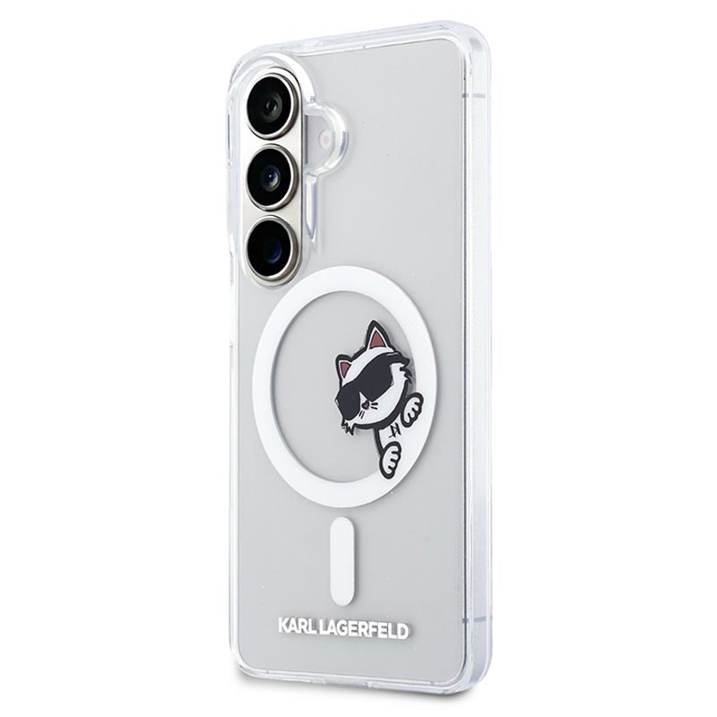 Arată-ți personalitatea cu husa magnetică Karl Lagerfeld IML Choupette Peekaboo Logo pentru Samsung Galaxy S26+. Această husă hibridă premium combină moda și protecția, prezentând motivul iconic Choupette Peekaboo și logo-ul semnătură. Fabricată din PC rigid și TPU flexibil, oferă protecție fiabilă în fiecare zi, păstrând în același timp o senzație de subțire și confortabilă în mână.