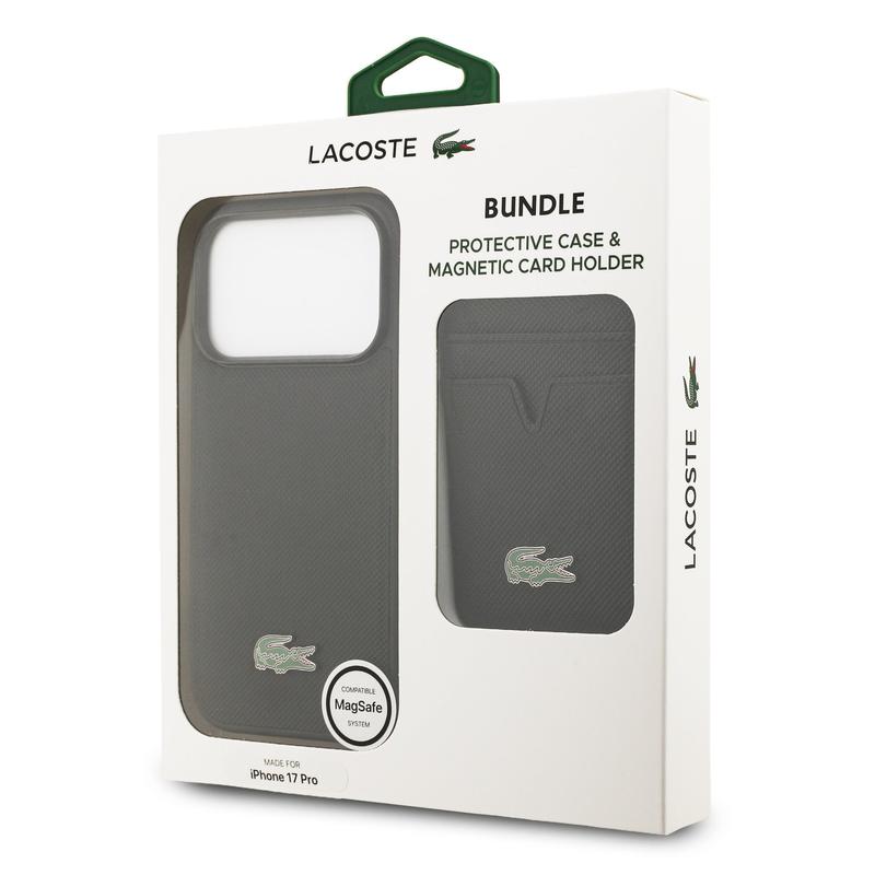 Husă MagSafe și suport magnetic pentru carduri Lacoste Iconic Petit Pique pentru iPhone 17 Pro - Set de husă protectoare și portofel premium